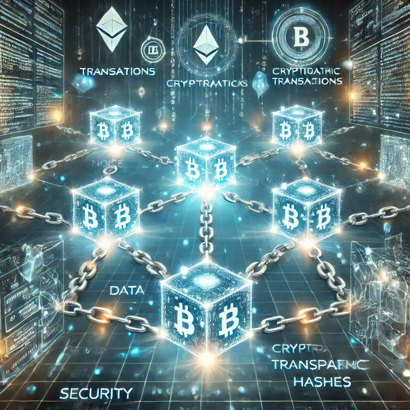 각 블록은 암호화 알고리즘(SHA-256 등)을 사용하여 고유한 해시 값을 생성합니다. 이 해시는 블록의 데이터 무결성을 보장합니다.